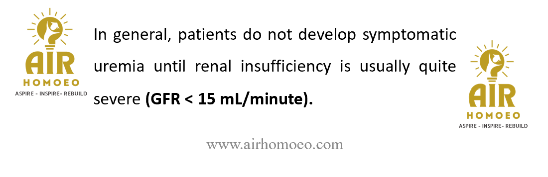 In general, patients do not develop symptomatic uremia until