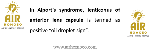 Positive “oil droplet sign” in Alport’s syndrome pertains to ?