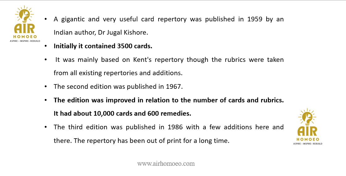 The Sixth Indian edition of Kent repertory was published in the year