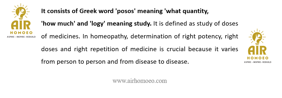 Assertion (A):In homeopathy, determination of right potency, right doses and right repetition of medicine is crucial the Greek word ‘posos‘ meaning ‘what quantity,‘how much‘ and ‘logy‘ meaning study.