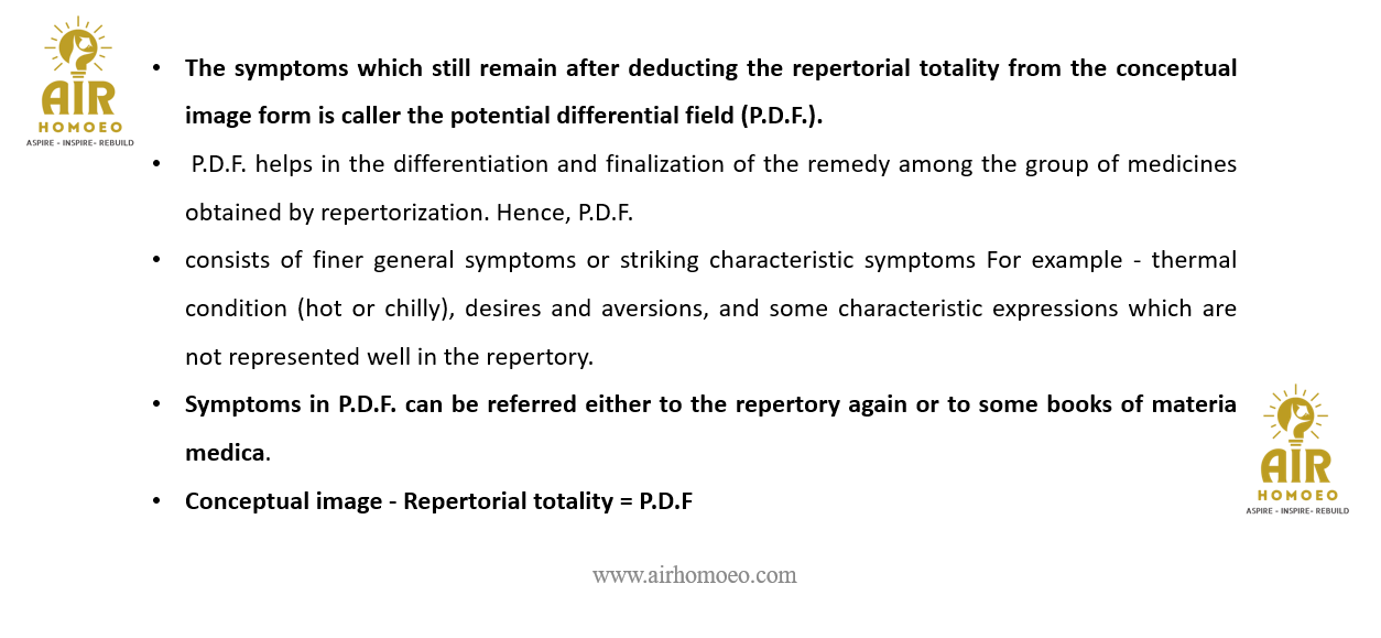 Assertion (A):The symptoms which still remain after deducting the repertorial totality from the conceptual image form is called the potential differential field E.E.T