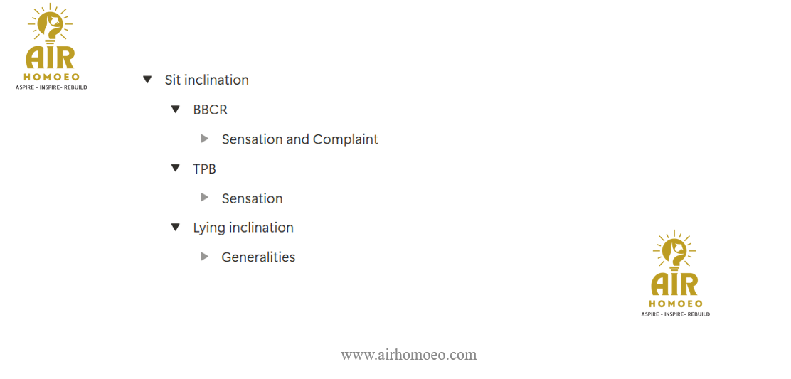 Reason (R): In B.T.P.B ‘Inclination to sit‘ is given in Sensation and complaints Chapter