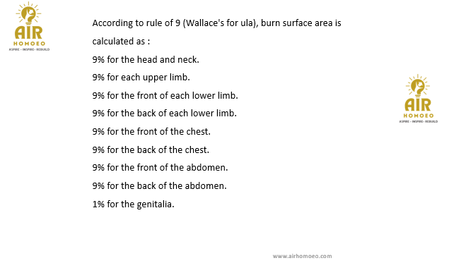 What is the percentage body surface area involved in head + face in burns